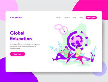 图穷联素材库 » 创意办公空间主题网站矢量插画Online Education Vol