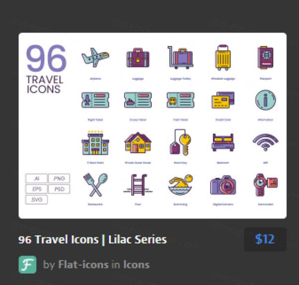图穷联素材库 » 旅行图标紫丁香系列 Travel Icons Lilac Series