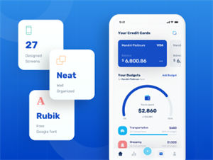 图穷联素材库 » 金融应用程序用户界面工具包Banky - Finance App UI