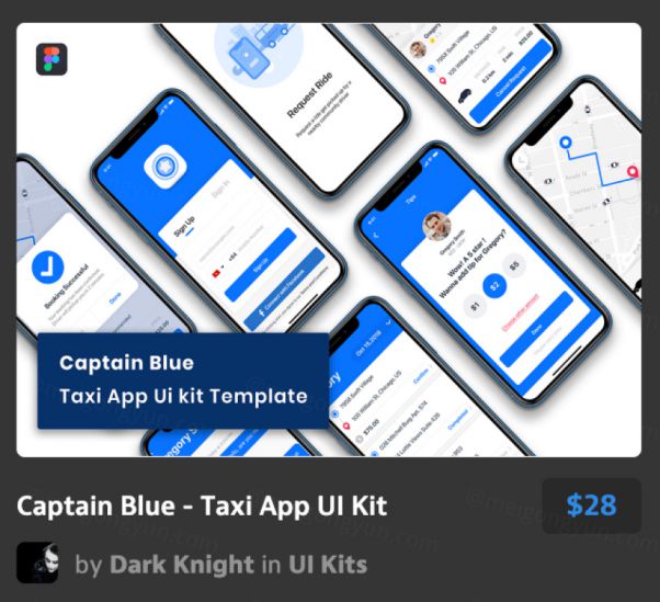 图穷联素材库 » 出租车应用程序UI工具包Captain Blue - Taxi App
