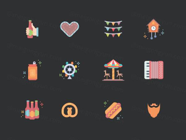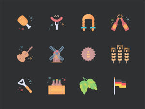 图穷联素材库 » 啤酒节平面图标Oktoberfest Flat Icons