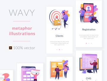 波浪形用户界面的隐喻插图 Metaphor illustrations
