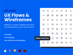 图穷联素材库 » 流线框大图标包UX Flows Wireframes Mega Ico
