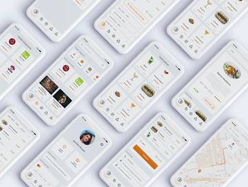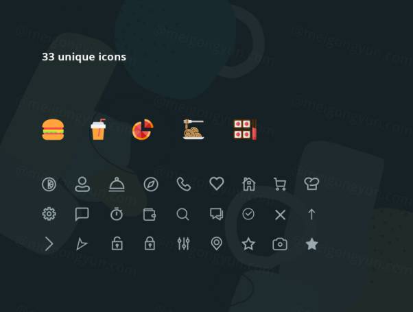 图穷联素材库 » 食物递送应用设计工具包模型独特图标 UI Kit Mockup uni