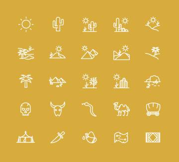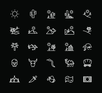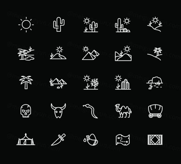 图穷联素材库 » 沙漠主题线性矢量图标 25 Desert Line Icons – V