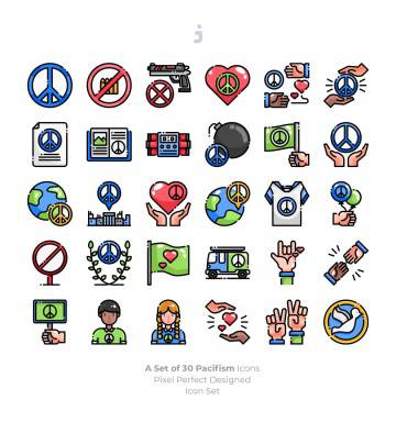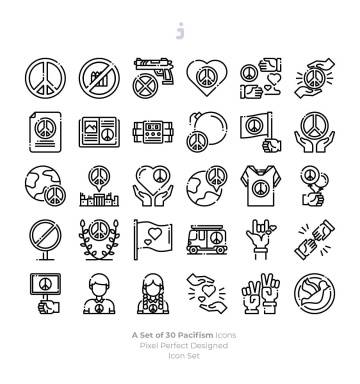 和平主义世界和平主题矢量图标 30 Pacifism Icons