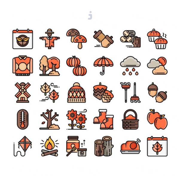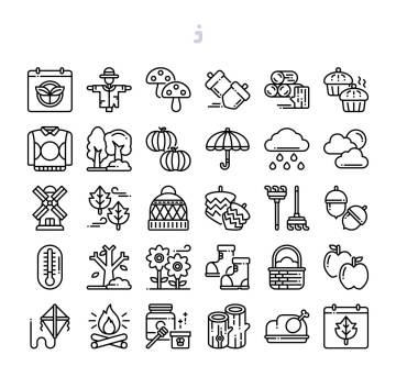 秋天元素矢量图标素材 30 Autumn Season Icons