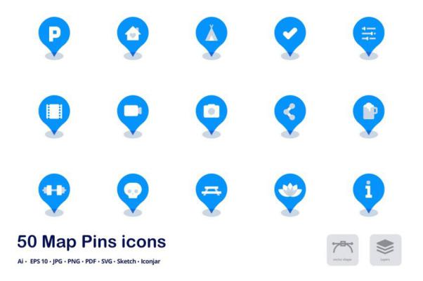 图穷联素材库 » 地图图钉双色调扁平化矢量图标 Map Pins Accent Duo