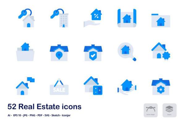 图穷联素材库 » 租房房地产销售主题双色调扁平化图标 Real Estate Accen