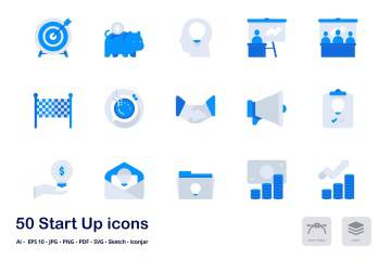 图穷联素材库 » 项目管理主题双色调扁平化矢量图标 Start Up Accent