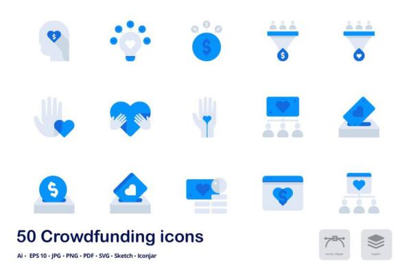 图穷联素材库 » 互联网众筹项目双色调扁平化矢量图标 Crowdfunding Acce