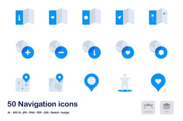 图穷联素材库 » 地图导航UI设计双色调扁平化矢量图标 Navigation Accen