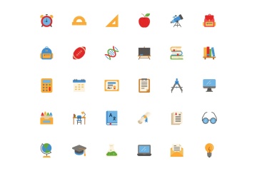 图穷联素材库 » 校园教育主题扁平化设计风格矢量图标素材 Back To School