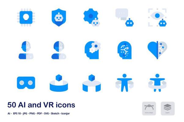 图穷联素材库 » 智能AIamp;amp;虚拟现实VR主题双色调扁平化矢量图标 AI a