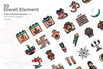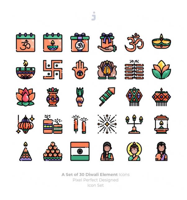图穷联素材库 » 印度万灯节排灯节节日主题图标素材 30 Diwali Icons