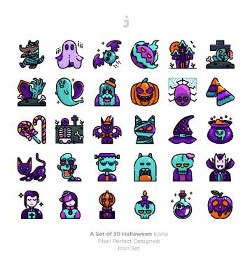 图穷联素材库 » 万圣节节日主题彩色矢量图标 30 Halloween Icons