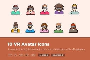 VR虚拟角色头像矢量图标 10 VR Avatar Icons