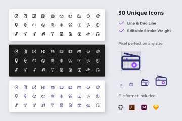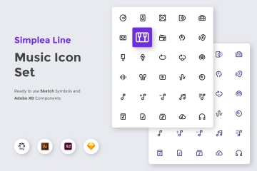 音乐应用UI设计线性图标素材 Simplea Line – Music