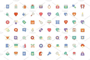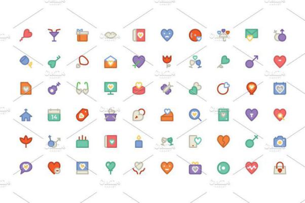 图穷联素材库 » 爱情和浪漫元素的彩色图标集合 250 Love and Romance