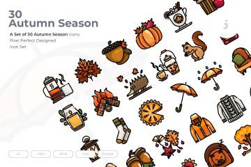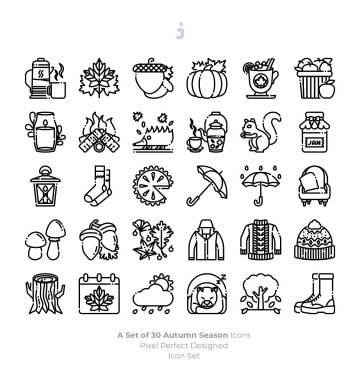 图穷联素材库 » 秋季主题元素矢量图标素材 30 Autumn Season Icons