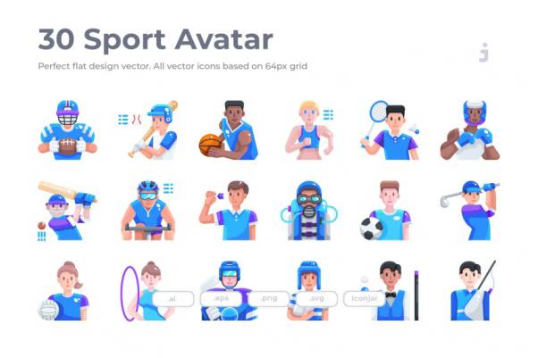 运动员人物扁平化设计矢量图标 30 Sport Avatar