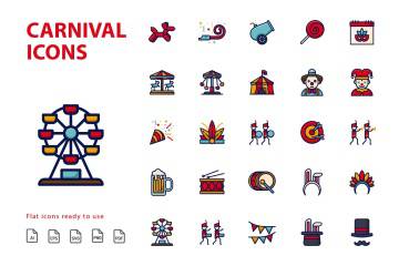 图穷联素材库 » 狂欢节主题填充图标素材 Carnival Filled