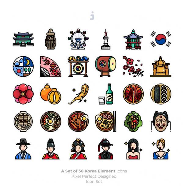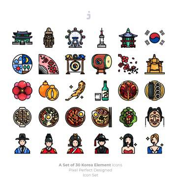 图穷联素材库 » 韩国民族元素矢量图标 30 Korea Element Icons