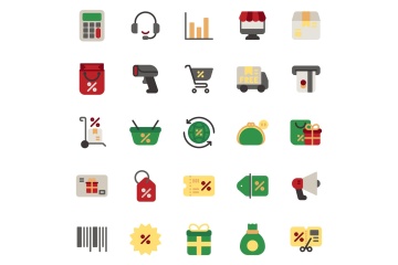 图穷联素材库 » 星期五购物节主题扁平设计风格图标 Black Friday