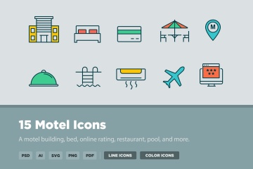 汽车旅馆矢量图标素材 15 Motel Icons