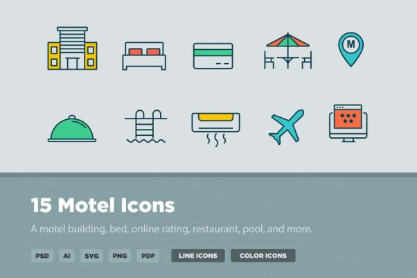 图穷联素材库 » 汽车旅馆矢量图标素材 15 Motel Icons