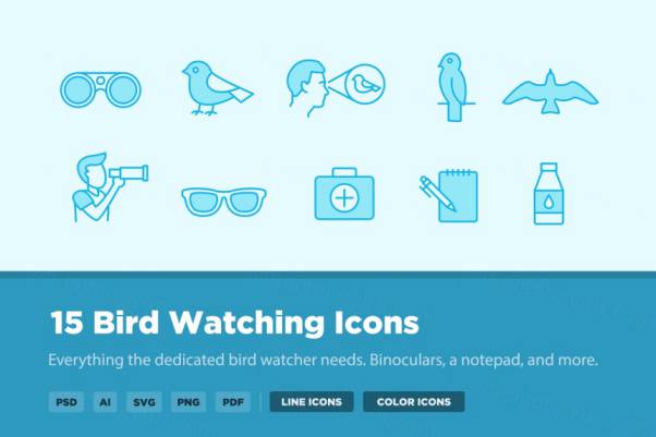 图穷联素材库 » 观鸟主题矢量图标 15 Bird Watching Icons