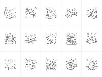 海洋主题矢量图标设计素材 Sea Life Vector Icons