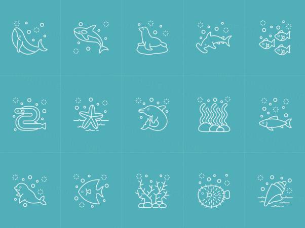 图穷联素材库 » 海洋主题矢量图标设计素材 Sea Life Vector Icons