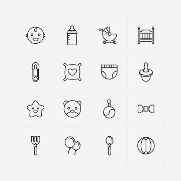图穷联素材库 » 婴儿元素婴儿主题矢量线性图标 Vector Baby Icons