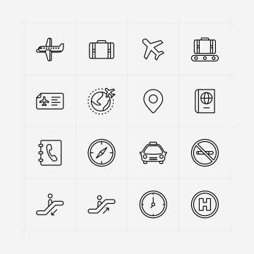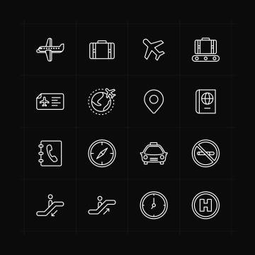 图穷联素材库 » 航空主题矢量线性图标 16 Vector Airport Icons