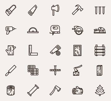 木制品及木工工具矢量图标素材 25 Woodwork Vector