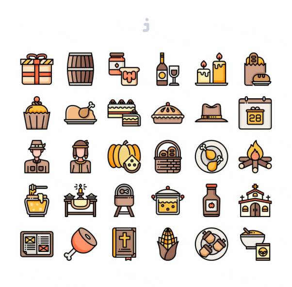 图穷联素材库 » 感恩节节日主题矢量图标 30 Thanksgiving Icons