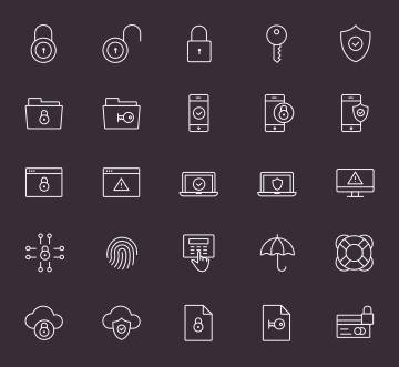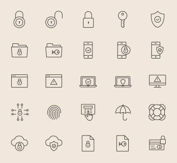 安全相关主题矢量图标素材 25 Security Icons