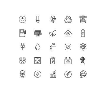 能源与生态矢量线性图标素材 Energy amp;amp; Ecolo