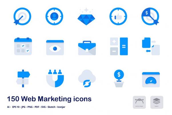 图穷联素材库 » 网站营销双色调扁平化图标素材 Web Marketing Accent