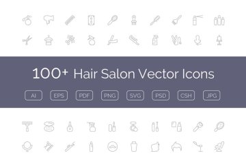 图穷联素材库 » 美发沙龙主题工具矢量图标 100 Hair Salon Vector