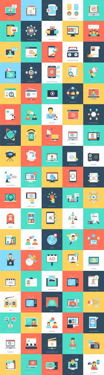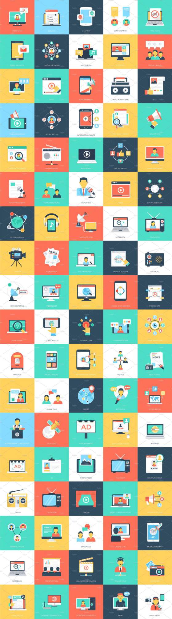 图穷联素材库 » 平面媒体广告图标 90 Media Flat Icons