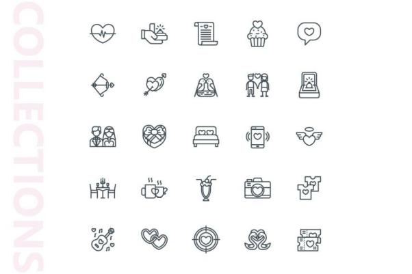 图穷联素材库 » 黑白扁平化爱心蛋糕情侣戒指情书天鹅情人节矢量图标