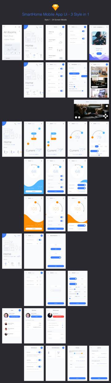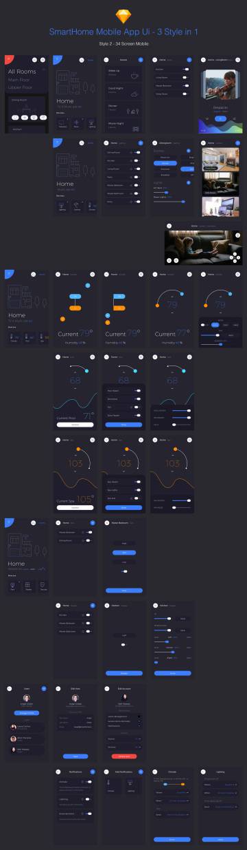 Smart Home Mobile App是用Sketch设计的ui套件。
