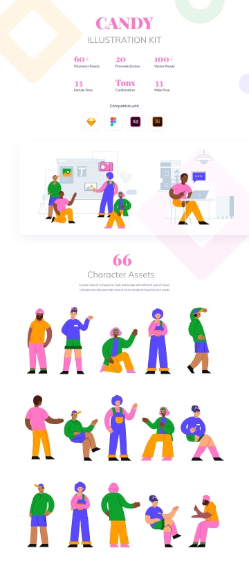 图穷联素材库 » 糖果色系创意人物插画素材合辑 Candy Illustration K