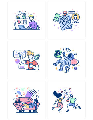 星期四聚会-精美的插图包,带有时尚和古老的人物。20个即用型IT世界场景可帮助您创建出色的网站和应用程序。所有插图均为100%向量,可轻松自定义。包装中包括AI,SVG,PNG。