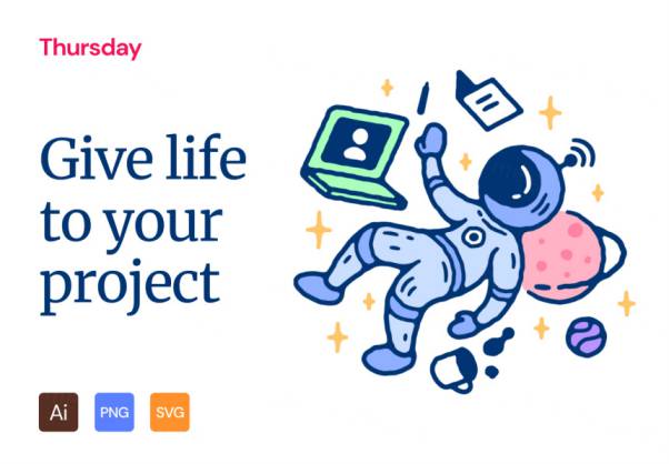 图穷联素材库 » 时尚精美的星期四IT工作场景插画素材 Thursday Illustr