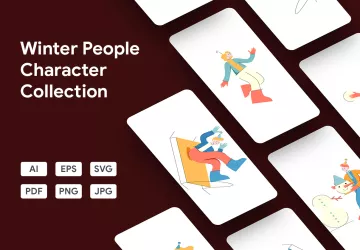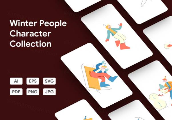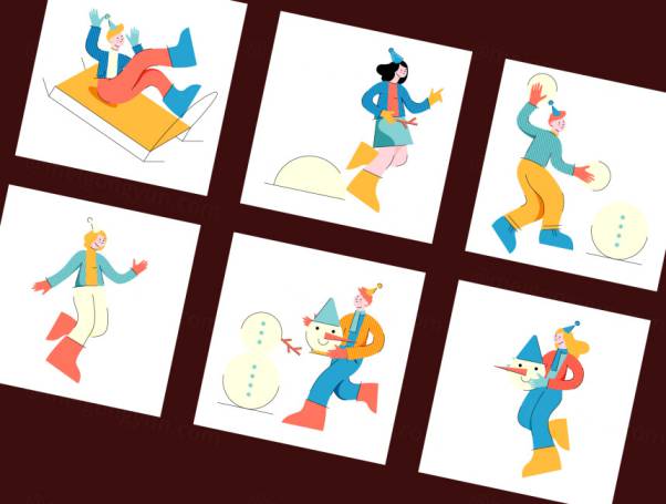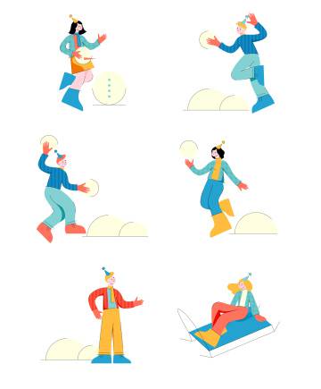 图穷联素材库 » 冬季快乐的孩子们矢量插画素材 Winter People Charac
