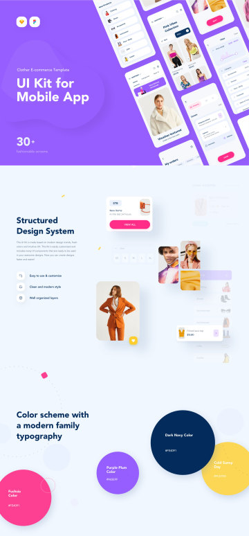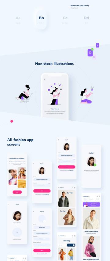 时尚服饰移动电商平台APP设计界面工具包 Clother UI Kit