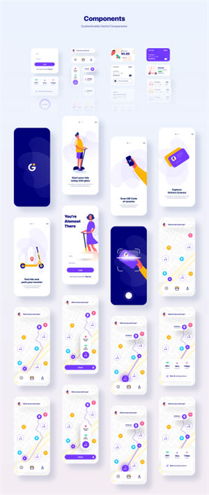 专业共享脚踏车租赁移动App移动应用程序UI套件 Glow App U